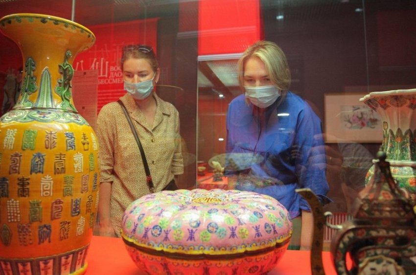 Лидия Поточкина отметила, что многие экспонаты были специально отреставрированы для казанской выставки. Получается, что 60 предметов впервые покинули запасники Эрмитажа, «выйдя в свет» именно в Татарстане. Среди них, например, новогодние картинки няньхуа, которые музейщики часто называют «лубочными». Таковых было отреставрировано порядка 30 штук, а всего на выставку приехали 80 «лубков».