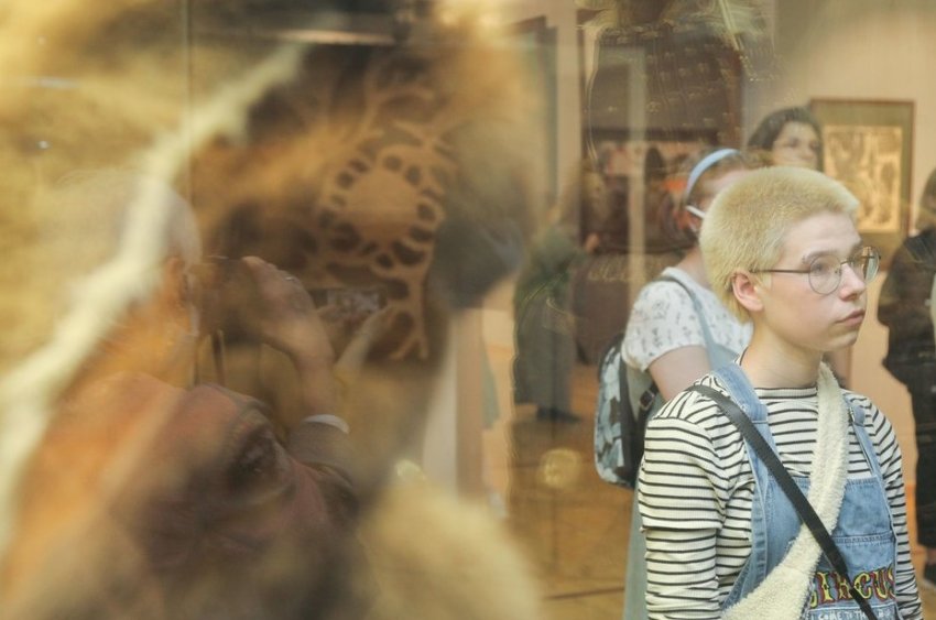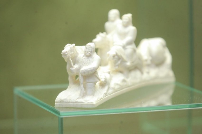 Генеральный директор Национального художественного музея Якутии Влада Тимофеева рассказала «Реальному времени» о самых ярких экспонатах выставки. В первую очередь она отметила резьбу по бивню мамонта: