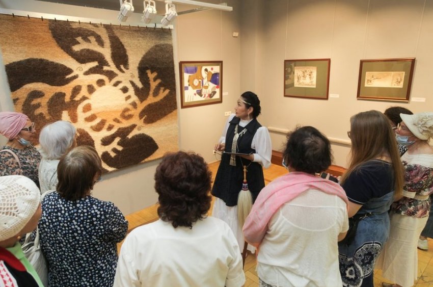 В Национальной художественной галерее «Хазинэ» ГМИИ РТ открылась выставка «От Олонхо к пространству творчества». Более 80 экспонатов из собрания Национального художественного музея Республики Саха (Якутия) компактно разместились в двух залах. Однако, чтобы внимательно изучить их, потребуется не один день. Правда, экспозиция работает только до 13 июня, пока идут Дни Якутии в Татарстане. Чем отличается комплект якутских модниц илин-кэлин кэбиһэр от хаситэ, почему вредно баловать боотура и кто это такой, а также когда с ответным визитом делегация Татарстана отправится в Республику Саха — в репортаже «Реального времени».