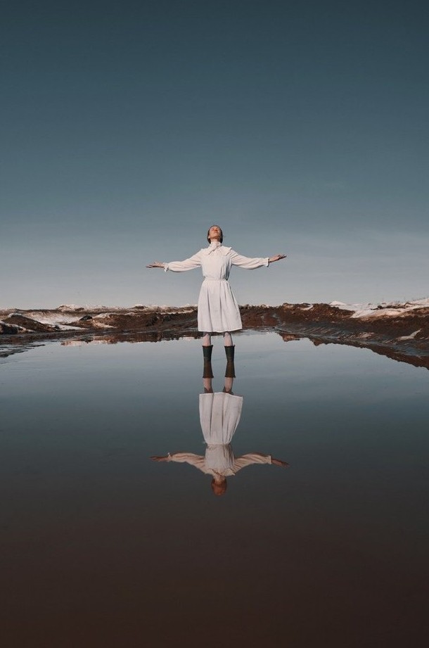 Изначально у меня была задумка провести там творческую съемку для своего портфолио. В планах это все еще есть, к слову. Было принято решение съездить на разведку, чтобы посмотреть, что вообще из себя представляет локация и как с ней можно взаимодействовать. Чтобы не ехать просто так, подумала поснимать автопортреты. Идеальный вариант одежды, чтобы сыграть на контрасте, — это белая одежда.
