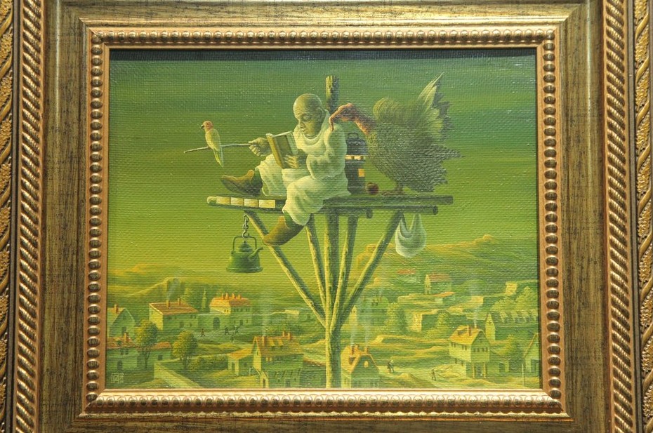 Или картина «Сон» — здесь явная отсылка к Сальвадору Дали. Недаром Простов-Покровский — единственный в России обладатель диплома и Кубка Международного альянса знаменитого коллеги. Хотя художник на этой картине изобразил Ирландию и мечты о ней: