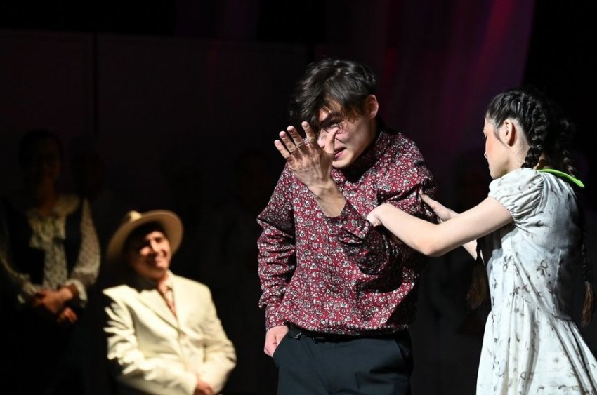 Но это произойдет во второй части спектакля. А в первой мы наблюдаем картину, когда в течение всего действия нет ни одного конфликта и ни одного хотя бы мало-мальски отрицательного персонажа. А значит, и играть нечего. Можно только изображать эмоции. Не спасают ни концертная интермедия, ни сцена в клубе с платьями в горошек, ни романтические прогулки. Вот полюбил Шафкат Асию, потому что она спасла подругу. А она в нем что нашла? Пленила девичье сердце солдатская выправка? Кажется, есть наметки конфликта, когда он хочет с ней провести Новый год, а у нее дежурство — но уже через некоторое время влюбленные кружатся в танце в январской стуже…