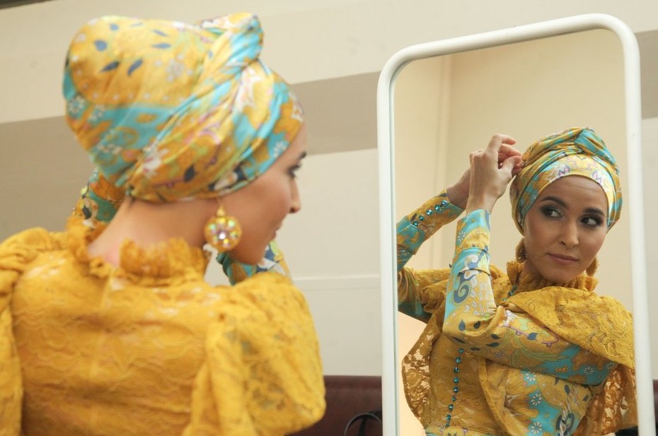 Признанная красавица, легенда татарской музыки, оперная певица Венера Ганиева, блистала и на сцене, и за кулисами. В своем умопомрачительном наряде она вновь произвела фурор. Разговаривая с журналистами, она сделала шутливый акцент на том, как заботится о собственном имидже: