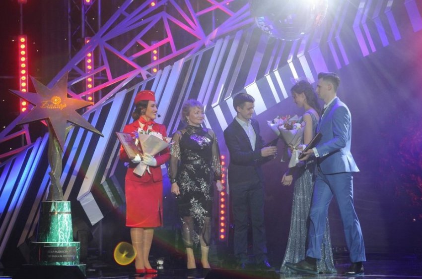 Обладатели номинации «Самый романтичный дуэт» — Гузель Идрисова и Илназ Бах — были в приподнятом настроении, хотя статуэтку получают уже третий год подряд.