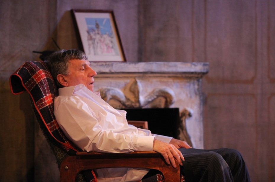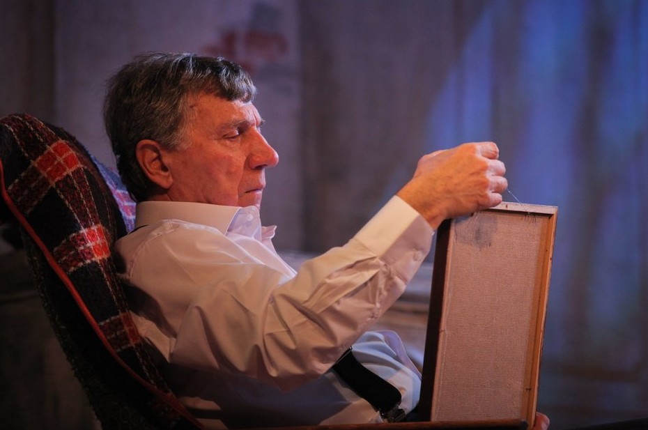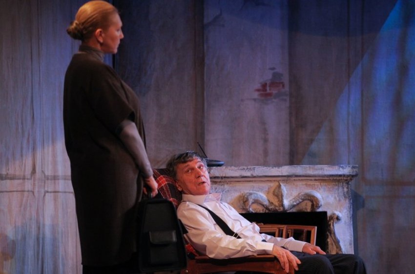 ТЮЗовскую постановку «Юбилея ювелира» можно назвать минималистичной с точки зрения декораций — они не меняются на протяжении двух действий: бедно обставленная комната, с потолка капает вода (звук которой нервирует зрителя), на сцене — только кресло и стол, в глубине — камин, из которого Морис и извлекает заветное ожерелье для королевы. Можно сказать, что в первом действии ничего не происходит — воспоминания, знакомящие с жизнью и бытом, диалоги с шутками, вызывающими редкий смех в зале… После антракта зал значительно поредел — сказалась затянутость первой части спектакля. Радион Букаев сообщил, что на премьере первое действие шло 56 минут — ровно на 3 минуты больше задуманного: «Паузы были, а современный зритель не готов их выдерживать». А еще режиссер рассказал, что и так сократил пьесу, которая должна была быть вдвое длиннее. «А если бы мы разыгрались, вы бы до полуночи не ушли», — добавил Вячеслав Казанцев (впрочем, антракт показал: уходить не мешало абсолютно ничто).