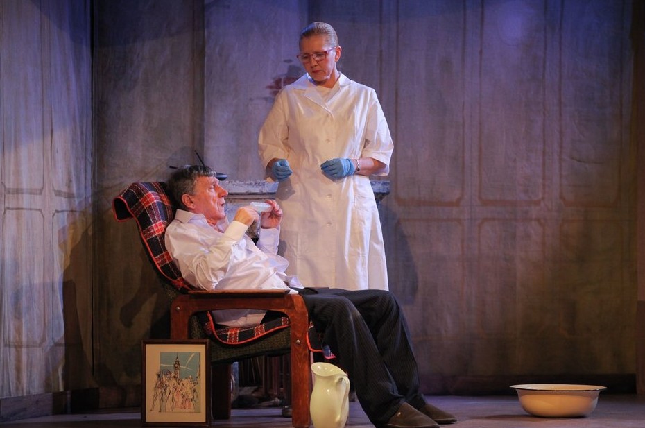 Интересно отметить, что в 2015 году Олег Табаков также остановился на этой пьесе к своему бенефису. Поставить ее в МХТ имени Чехова он поручил Константину Богомолову, которого называют сегодня одним из главным театральных провокаторов. Действительно, режиссер точечно и существенно «прооперировал» пьесу — сократил диалоги, подробности, а некоторые сюжетные линии, причем весьма значимые, и вовсе заменил. Так, в версии Богомолова, к умирающему является не королева, как написала МакОлифф, а его переодетая супруга, из любви и жалости к мужу решившаяся на невинный розыгрыш.