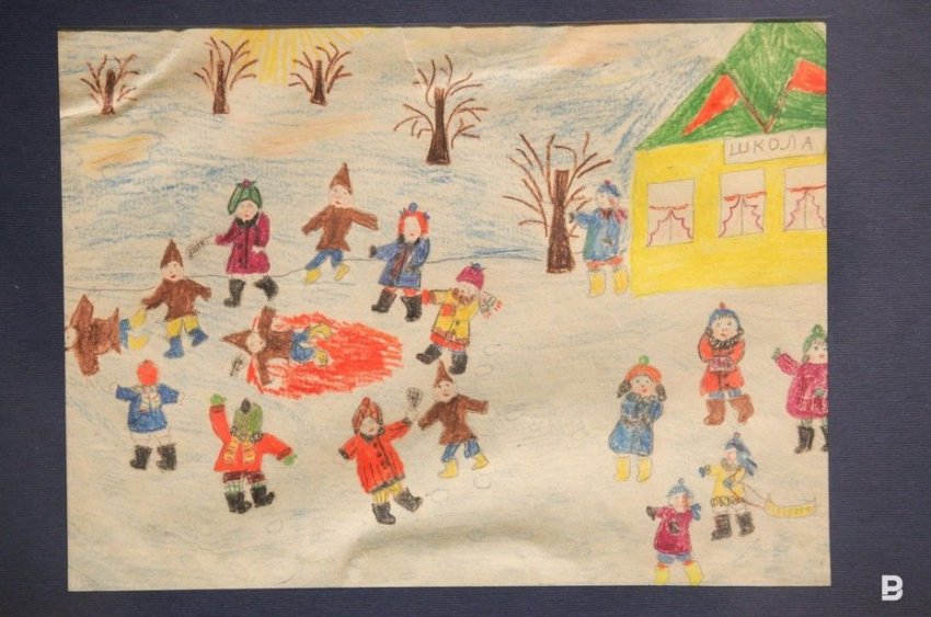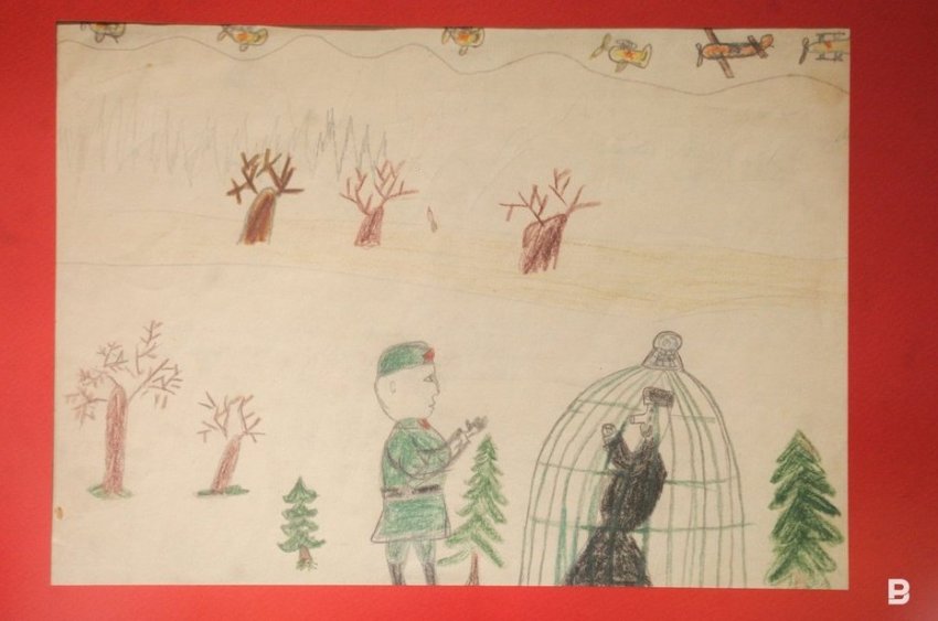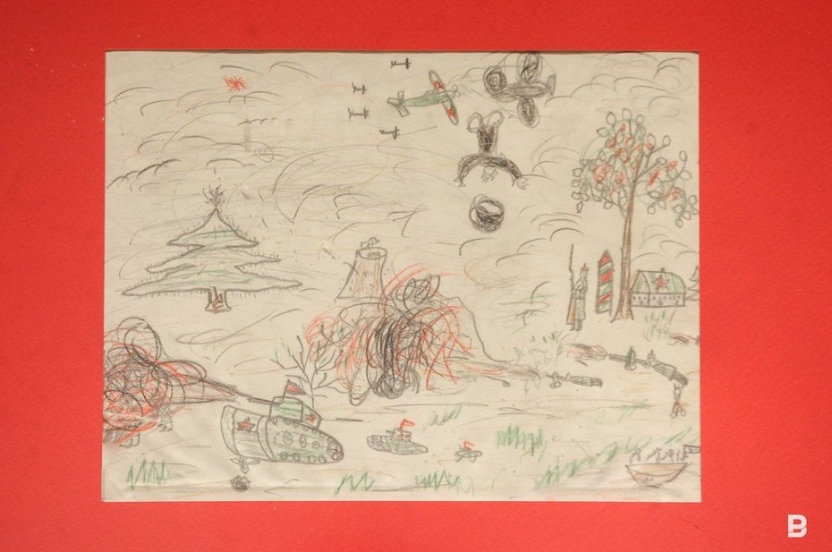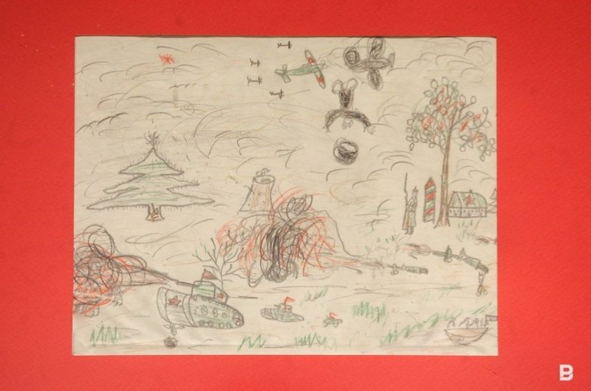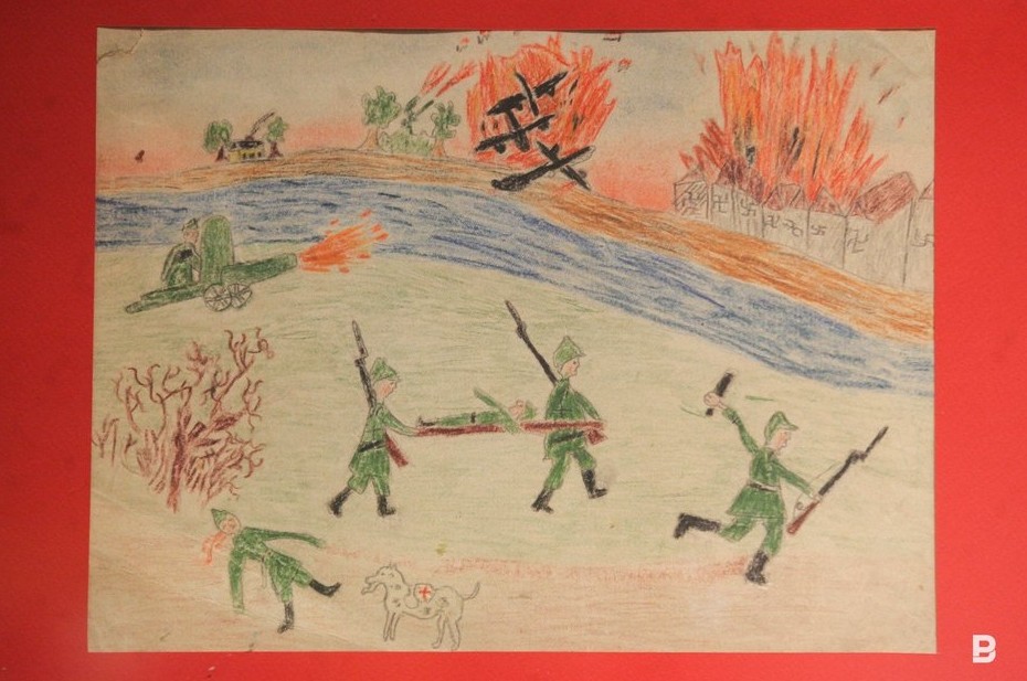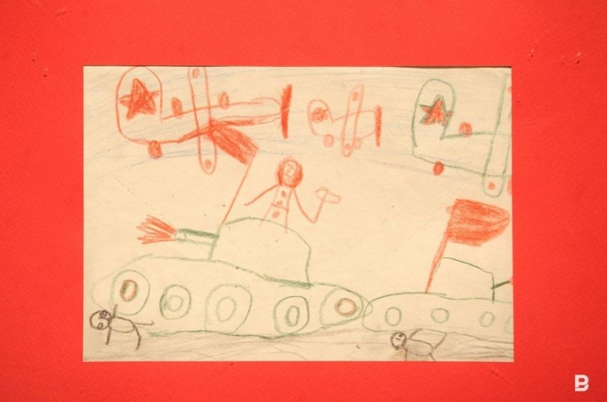 — Дети рисовали прежде всего мирную жизнь. Понятно, что это были рисунки не на свободную, а на заданную тему — воспитатели читали детям сводки с фронта, заметки из газет, включали радио, что-то обсуждали между собой. Дети впитывали и рисовали. Так, наверное, и получились рисунки «Школьники обманули гитлеровцев», «Танки и самолеты», «Рысью», «Гитлеровцы сожгли дом Танечки». Мы определили одного из авторов рисунков, это Дина Каримовна Валеева, которая в мирное время была искусствоведом в нашем музее, сейчас она на пенсии. По ее словам, война — самое счастливое время в ее жизни, потому что «так сильно, как тогда, нас не любили больше». Оно и понятно, ведь дети — это будущее, их кормили как могли, берегли, холили и лелеяли.