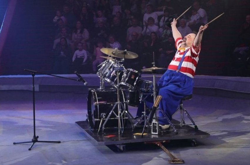 Чего стоит только номер, где Просвирнин стучит на барабанах, вовлекая публику, разделяя ее на команды, после чего Кисилевский, также желающий внимания, начинает танцевать чечетку, а заканчивается все постепенным разбором ударной установки. А перед тем как на арене устанавливают мотоциклетный шар, какой-то мальчик под джазовый аккомпанемент, ведомый Просвирниным, поет: «Я люблю маму! И папулю тоже!».