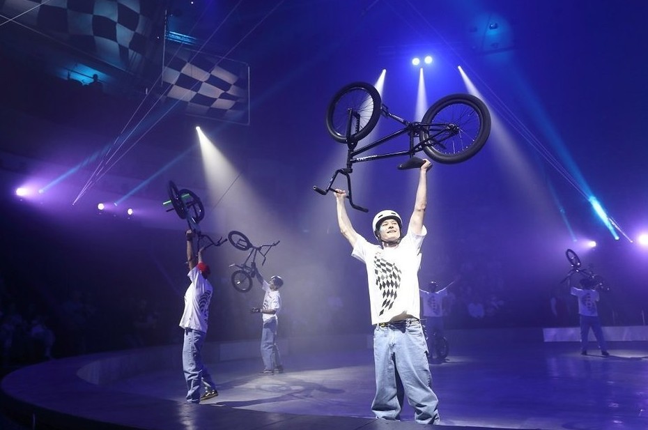 Впрочем, основой программы все равно остаются артисты. Она своеобразно закольцована — начинается все с велотриала от команды Евгения Залесского, а заканчивается мотоциклистами в шаре.
