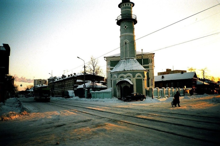 Перенесемся в другую часть Тукаевской. Погода на фотографии соответствует той, что установилась за окном. А вот облик улицы Галиаскара Камала, где на пересечении с Тукая стоит мечеть, серьезно изменился. Сейчас на этом месте в основном новые постройки, в частности популярное уйгурское кафе. Многие годы стоит забор, за которым после установки фундамента и каркаса брезжит какая-то жизнь.