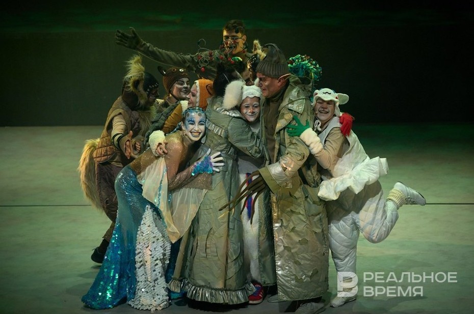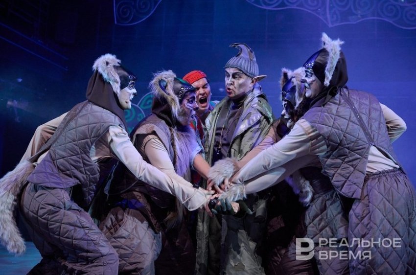 Говорят, изначально путешествие было длинным, но в спектакле список ограничили водяными во главе с Айгуль Шакуровой/Айгуль Гардисламовой — вышел красивый и чувственный номер в блестящих костюмах, — а также волками с Эльзой Муратхузиной/Чулпан Назиповой и Зуфаром Нуртдиновым/Ильсафом Назиповым.