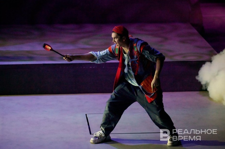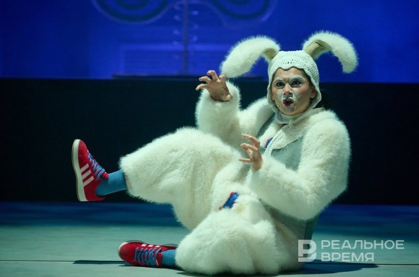 Ахметшин при этом сочинил с десяток бодрых песен для мюзикла, в основном стилизованных под рок. Иногда в качестве фона начинает играть музыка из фильма «Хороший, плохой, злой», что веселит публику. Вообще, ничто так не выручает в новогодней сказке, как юмор. Здесь внезапно шутят про женщин и змей, предлагают говорить заклинания из «Гарри Поттера» на татарский манер, водяные незаметно подкатывают к Исмагилю, заяц выдает трагический монолог в круге света, а пара героев исчезает в люке в полу — побольше бы таких эффектов, шепчутся коллеги.