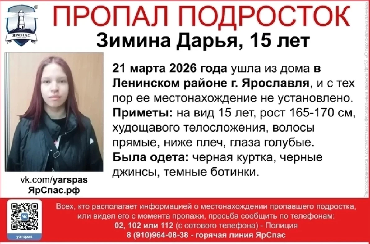 Как сообщалось, Дарья З. 21 марта ушла из дома в Ленинском районе г. Ярославля, и с тех пор ее местонахождение не установлено.