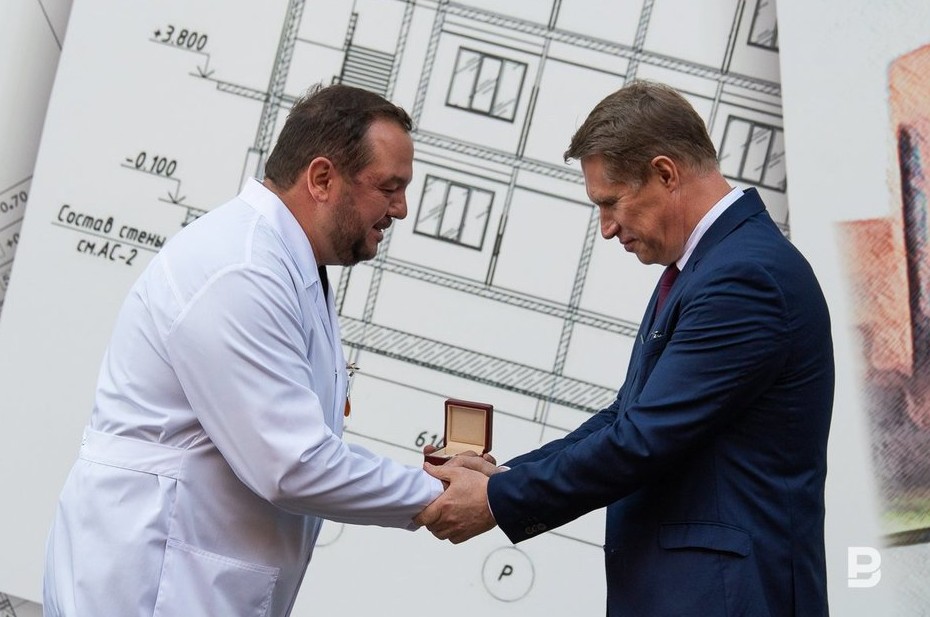 В Казани открыли построенный в рекордные сроки второй корпус Республиканской клинической инфекционной больницы. На презентацию уникального для страны проекта — возведенного на пустыре с нуля за 100 дней медучреждения на 500 коек — лично прилетел министр здравоохранения России Михаил Мурашко. За ударную стройку Минниханов наградил главу строительной компании «Ак Таш» Газинура Ахметова орденом «За заслуги перед Республикой Татарстан». Главврач РКИБ Марат Гатауллин получил от строителей символический «золотой ключ» от новой клиники. Как стало известно в ходе церемонии, на татарский проект корпуса «инфекционки» за 1,8 млрд рублей уже положили глаз другие регионы. Подробнее — в репортаже «Реального времени».