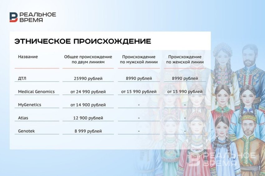 В тесте на этническое происхождение будет описание гаплогруппы: у каких национальностей больший процент носительства, история ее возникновения и пути миграции, распространения, описание культуры племен, проживавших на этих землях много лет назад. Это исследование охватывает 2—10 тыс. лет. В заключении также будут указаны известные личности древности и современности. Точность теста составляет 99,99%, заверили нас в клинике.
