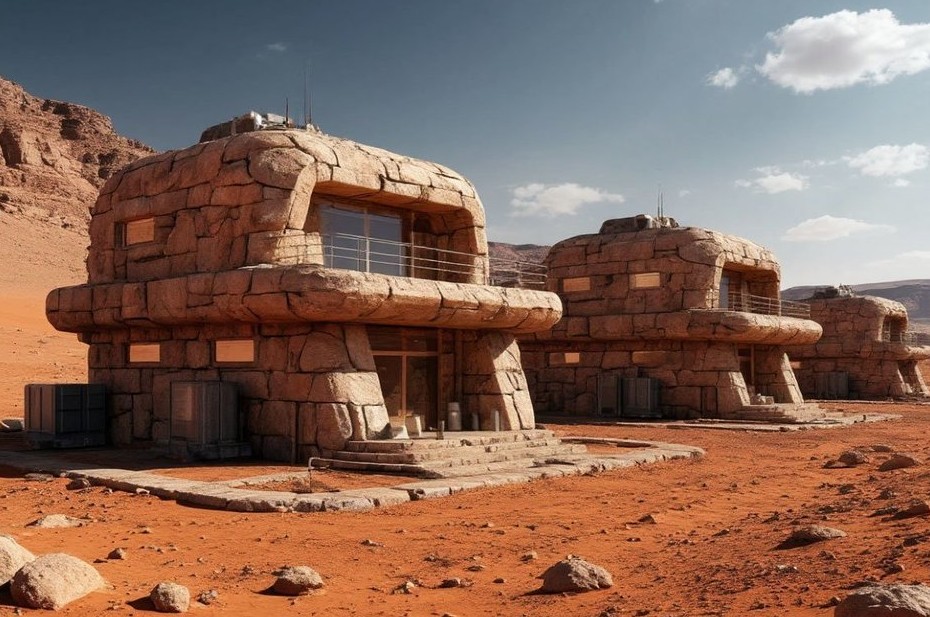 Международная группа ученых из Италии, США и Китая предложила призвать на помощь бактерии и попробовать организовать на Марсе биоминерализацию, или биоцементацию. Это процесс, когда в природе бактерии скрепляют частицы грунта, и получается прочный камень наподобие песчаника. Процесс строительства должен будет выглядеть так: в роботизированной системе будет смешиваться реголит, культура бактерий и питательный раствор. На выходе — готовый материал, из которого послойно печатаются конструкции зданий.