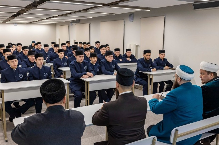 По его словам, само здание было построено в 1960-х годах, и при реконструкции специалисты столкнулись с рядом конструктивных особенностей. В процессе ремонта они укрепили конструктив, восстановили инженерные сети, полностью изменили облик внутренних помещений и фасада. В результате было создано комфортное современное пространство, отвечающее образовательным стандартам и оснащенное всем необходимым оборудованием. Так, для шакирдов обустроили классы с интерактивными досками, конференц-зал, медицинский кабинет, спортивный зал с тренажерами и даже студию звукозаписи, где ученики могут проверить правильность чтения Корана и произнесения азана.