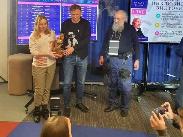 В «Большой инклюзивной викторине» выбирают двух победителей — в студии и онлайн. Но из-за того, что не все смогли правильно зарегистрироваться, получилось так, что оба знатока присутствовали на игре лично. Больших золотых сов в тюбетейках вручили Ольге Майковой, всю игру занимавшей вторую позицию после Вассермана, и Руслану Шаймухаметову. Еще два приза — планшеты — получат два онлайн-участника, набравшие наибольшее количество баллов.