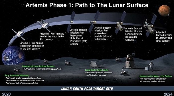 Индия попробовала использовать более прямой полярный маршрут: ее неудачный посадочный модуль «Чандраян-2» потерпел крушение в том же регионе в 2019 году. Российский «Роскосмос» в сотрудничестве с Европейским космическим агентством также нацелился на южный полярный регион для посадки в конце 2021 года и в 2023 году в кратере Богуславский в качестве испытательной миссии. Затем «Роскосмос» нацеливается на бассейн Эйткен в том же регионе в 2022 году, чтобы вести поиски воды в постоянно затененных областях. У ряда частных компаний также есть амбициозные планы по добыче ресурсов на Луне.