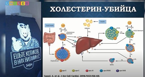 Да, действительно, он может участвовать в патологическом процессе формирования бляшек, но он не виновен — то есть это делает не он: сначала появляются повреждения нервных клеток, поврежденные клетки начинают массово захватывать холестерин из нормальных, например, в пенистые — они так называются, потому что похожи на пену. И потом уже в этой клетке как попытка залатать пробоину возникает склеротическая бляшка.