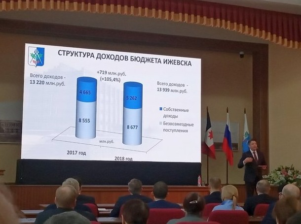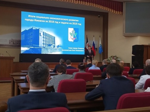 Глава Ижевска Олег Бекмеметьев выступил с докладом по итогам социально-экономического развития города в 2018 году и планам на 2019-й. При этом в самом начале он сразу предупредил, что не может в полной мере говорить о своей сопричастности «к достигнутым успехам» в прошлом году, так как вступил в должность только в середине октября. До этого кресло мэра столицы Удмуртии оставалось вакантным в течение почти полугода. При этом о недоработках и проблемах Бекмеметьев тактично умолчал, упомянув лишь, что в конце прошлого года в бюджете не было средств на освещение улиц и уборку снега. Тогда финансовую помощь столице оказала республика.