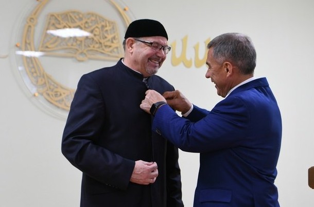 Завершая выступление, Рустам Минниханов отметил заслуги ректора РИИ и БИА Рафика Мухаметшина, который внес свой вклад в развитие системы отечественного мусульманского религиозного образования. Президент позвал виновника торжества на сцену и прикрепил на лацкан пиджака госнаграду РТ — медаль ордена «За заслуги перед Республикой Татарстан». Награда от Минниханова нашла и другого героя — руководителя департамента по взаимодействию с религиозными организациями управления президента России по внутренней политике Евгения Еремина, который получил медаль РТ «За доблестный труд».