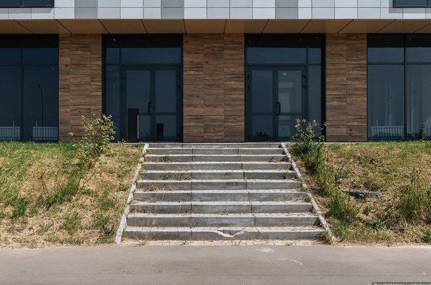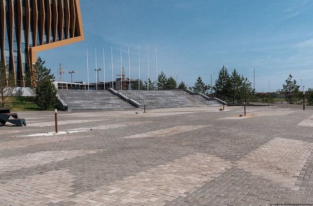 А вот выйдя на улицу, ты попадаешь в обычный советский п… ц. Просто поразительный контраст, и дальше он будет нас преследовать по всему Иннополису. Современная архитектура, хорошие здания, уверен, неплохая начинка, но все это стоит просто в ужасном колхозном благоустройстве из 90-х. Такое впечатление, что здания проектировали и делали иностранцы, а благоустройство какие-то криволапые дебилы из 90-х. Откуда они вообще взяли эту плитку и эти лавочки?