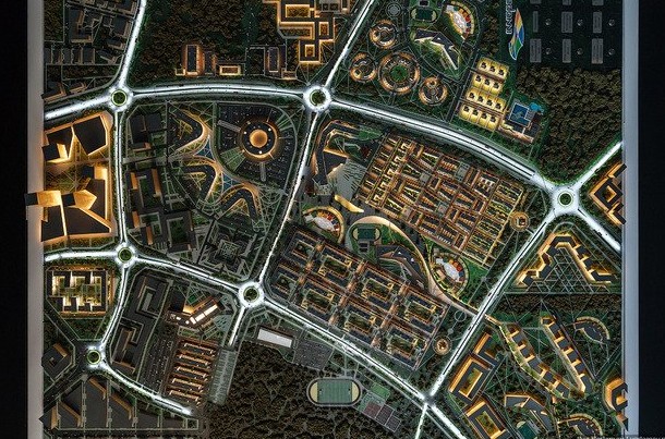 В администрации города висит план, каким город когда-нибудь будет. Тут хорошо видно, что архитекторы не очень думали о том, как город будет считываться жителями. Их больше волновал красивый паттерн для перелетных птиц или спутников «Гугла». Чуть позже, опустившись на землю, мы с вами это поймем.