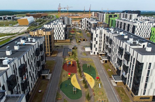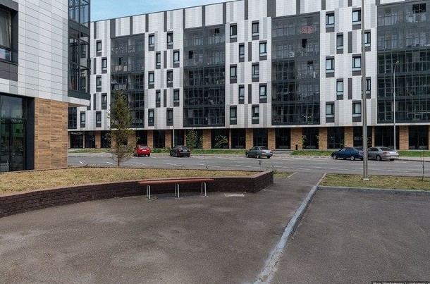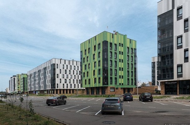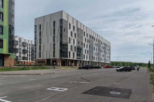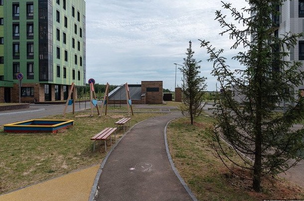 Ладно, давайте посмотрим жилые кварталы. На нормальную квартальную застройку тут не хватило смелости. Спасибо, хоть не застроили 25-этажными муравейниками. Жилой сектор рассчитан на 150 000 жителей. До всех объектов можно добраться за 5—10 минут. Всего тут 1570 квартир. Как только сотрудник компании приезжает в Иннополис, ему необходимо подать заявку, и спустя некоторое время он может получить однокомнатную или двухкомнатную квартиру. Однокомнатная обойдется в 7 000 руб. в месяц, двухкомнатная в 10 000 руб. в месяц + коммунальные платежи.