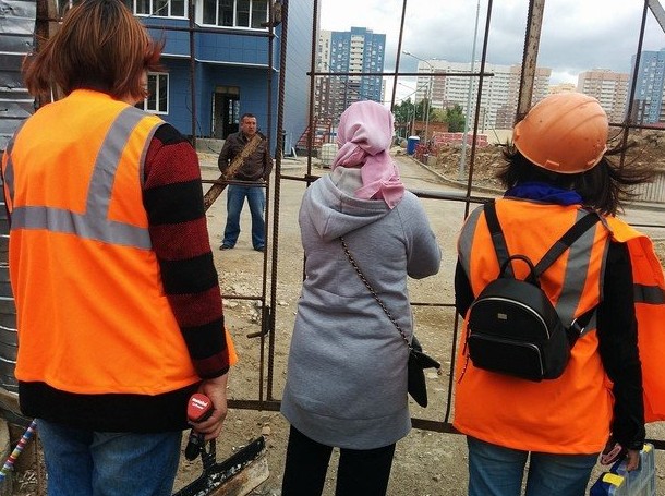 Жильцы с инструментами в руках пытались зайти за ворота недостроенных домов, но, конечно, не могли, несколько человек, скорее всего, охранники не подходили близко к забору. Позже начальник службы охраны, некто Айдар, не ставший называть фамилию, пообщался с недовольными жильцами, внимательно их выслушал, впрочем, ничего конкретного не ответил на их вопросы. Через некоторое время подошел и полицейский, сказал, что вызвали, но кто именно, не уточнял. Представитель внутренних органов только хотел убедиться, что здесь нет несогласованного митинга.