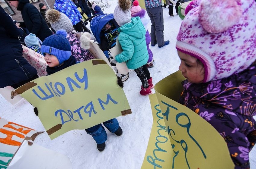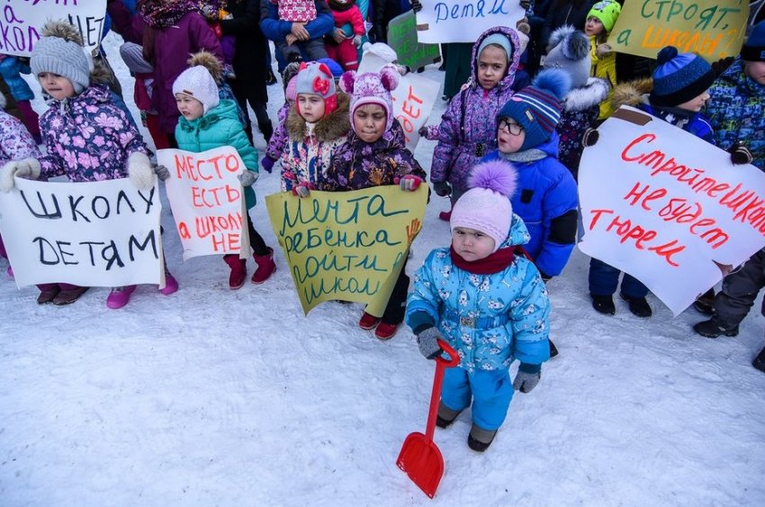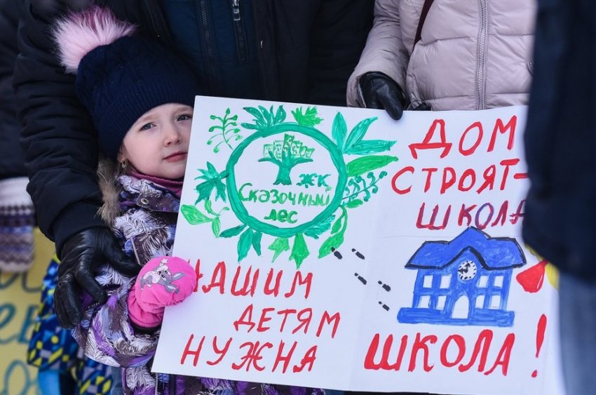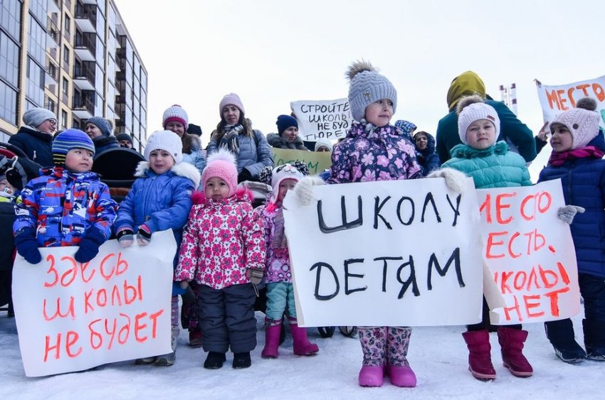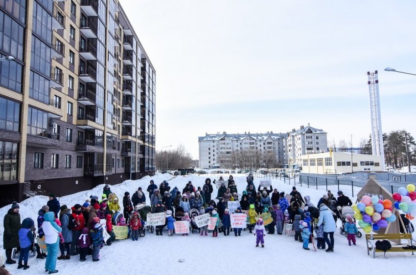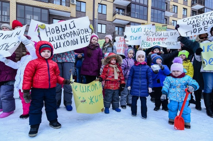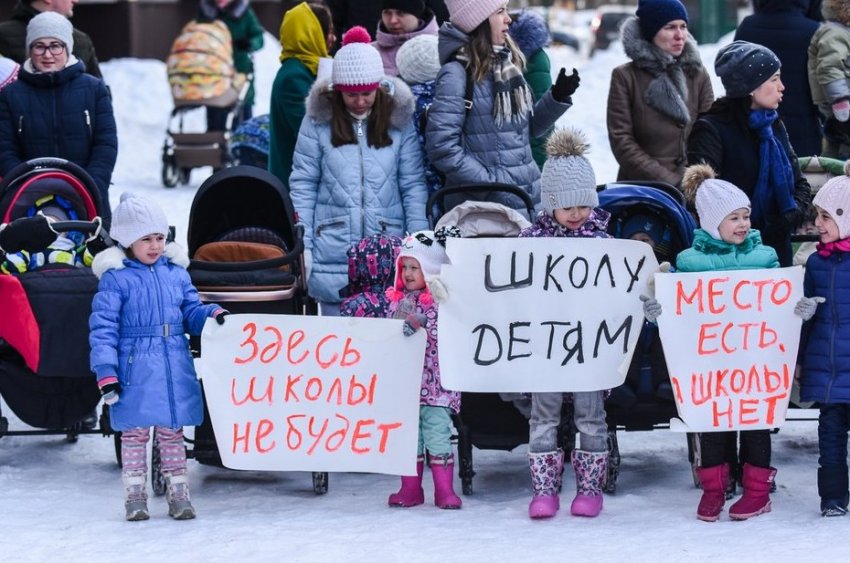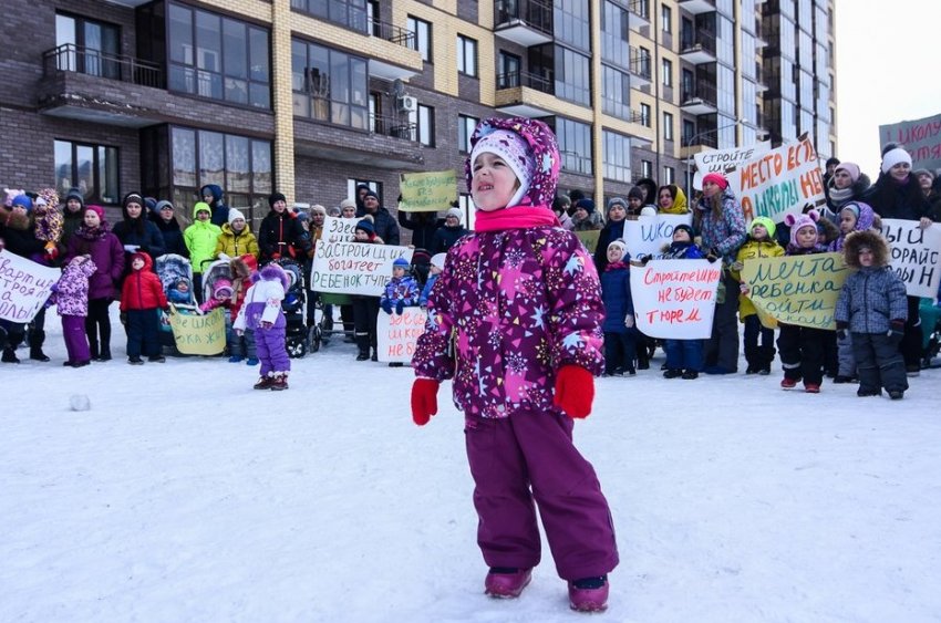 Жители ЖК вышли отстаивать право своих детей на школу и садик. Первой просто нет, второй уже переполнен