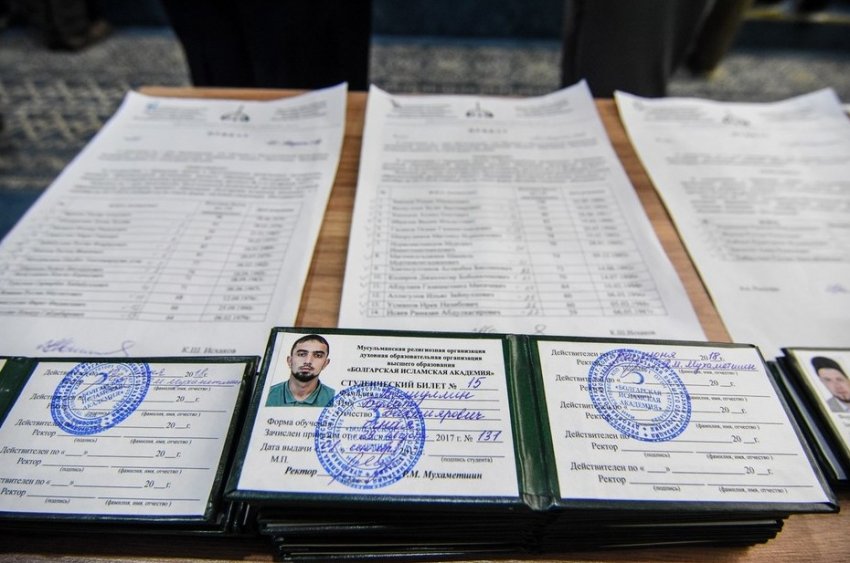 «Неторжественная» часть открытия Болгарской исламской академии началась с вручения студенческих билетов первым обучающимся. Всего в академию было подано 75 заявлений от абитуриентов, из которых успешно вступительные испытания прошли 36 человек. 27 из них будут обучаться в магистратуре и 9 — в докторантуре. Еще 15 абитуриентов, находящихся в хадже, экзамены пока не сдавали — для этой категории поступающих они будут организованы 12 сентября.