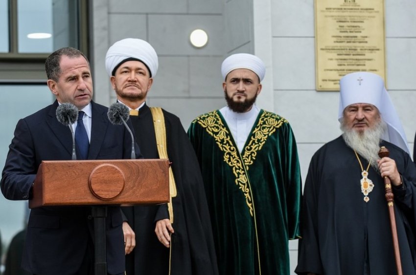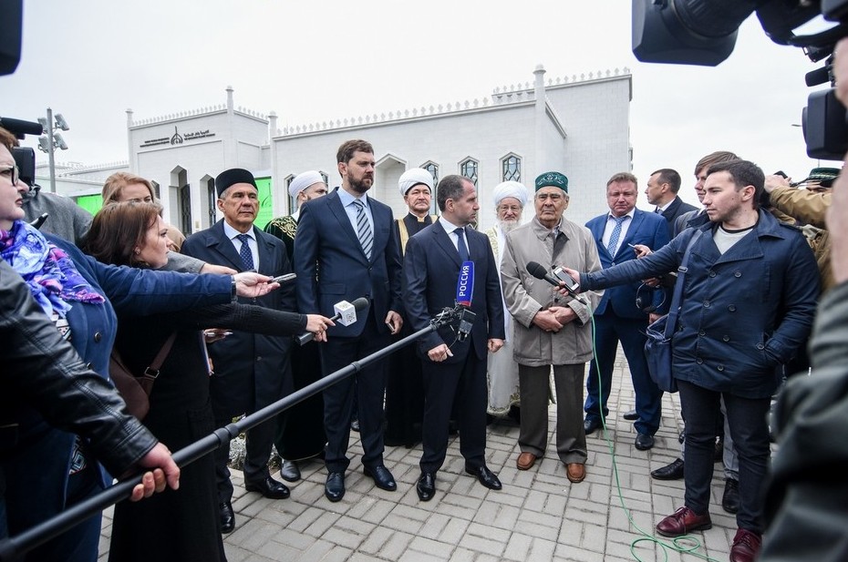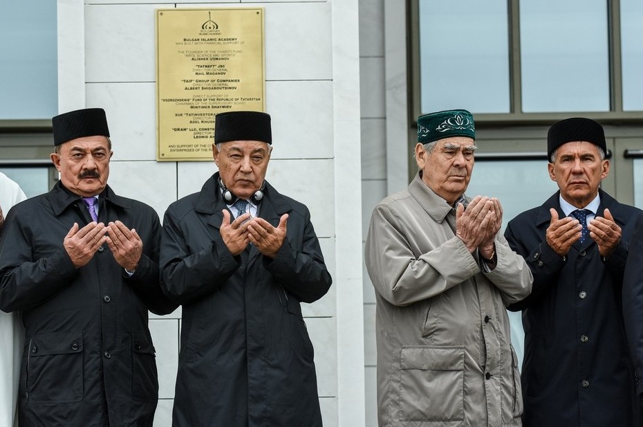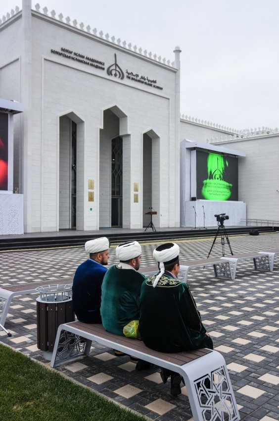 Официальная церемония открытия академии прошла чуть позже на улице у входа в здание, где собрались мусульманские деятели, федеральные и республиканские чиновники. Со сцены их приветствовала внушительная делегация федералов — полномочный представитель президента РФ в ПФО Михаил Бабич, руководитель Федерального агентства по делам национальностей Игорь Баринов, заместитель начальника управления внутренней политики администрации президента РФ Михаил Белоусов.
