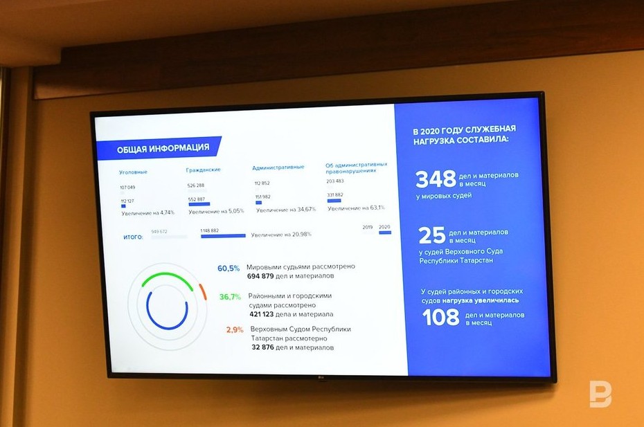 В зону критики руководителя УСД в РТ попали и сайты Фемиды. Точнее, подход судей к официальной публикации обезличенных решений в Сети. В 2020-м на сайтах судов республики разместили 232,5 тысячи судебных актов. Однако количество размещенных по ошибке, с нарушением срока или вовсе неопубликованных также впечатляет: каждый восьмой акт по гражданским делам, каждый шестой — по уголовным, каждый пятый — по административным.