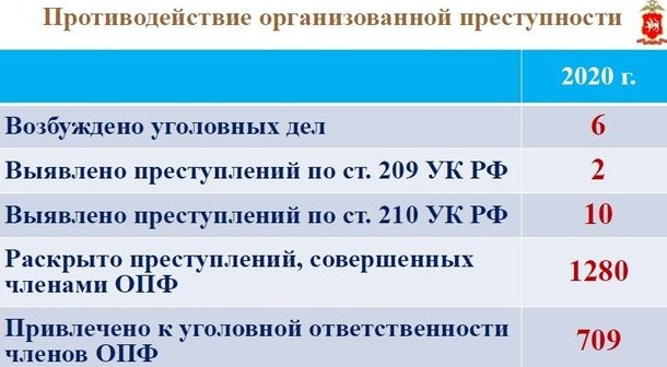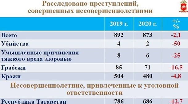 Глава МВД по РТ напомнил — проблема оргпреступности и преступных групп, в том числе с участием несовершеннолетних, остро встала еще два года назад. Поэтому в 2020-м ее объявили приоритетной. Результатом попыток криминала повлиять на обстановку в республики стали два дела в отношении «воров в законе» и задержание «смотрящих» по Чистопольскому и Агрызскому районам, сколотивших ОПГ для вымогательств и «крышевания» местных предпринимателей.