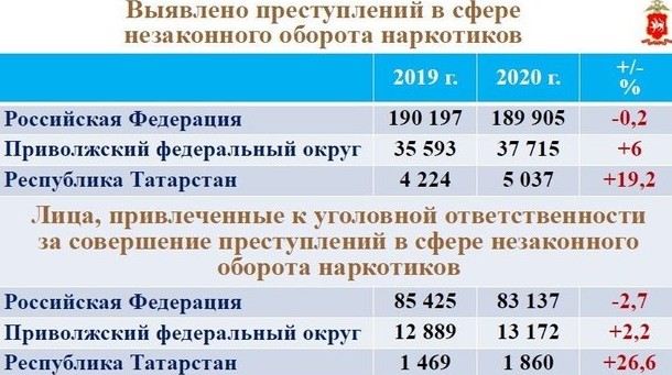В Бугульме и Нижнекамске снизилось число привлеченных за наркосбыт. Хотя в целом по Татарстану зафиксировано увеличение выявленных наркопреступлений почти на 20%. В работе — дела 49 участников четырех ОПС, занимавшихся бесконтактным сбытом «дури» в регионах России.