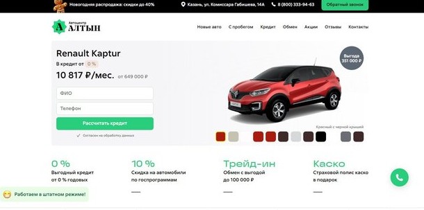 — В рамках рассмотрения обращения Татарстанским УФАС России установлено, что автосалон доводил до потребителей недостоверные сведения о возможности приобретения автомобиля в кредит и наличии банков-партнеров, — сообщили «Реальному времени» в пресс-службе ведомства. — В частности, Управлением установлено, что в автосалоне предлагали купить Renault Kaptur за 668 тысяч рублей (на сайте «Алтына» его обещают продать по цене от 649 тыс. рублей в кредит от 0% годовых, — прим. авт.). Но реальная стоимость иномарки составляла более 1 млн рублей. Данную стоимость клиенты узнавали лишь во время оформления документов, при этом приобрести автомобиль за наличный расчет не представлялось возможным. Процент же по кредиту был выше указанного в рекламе и на сайте, в частности из информации, размещенной на сайте, следовало, что кредит предоставляется под 1%.