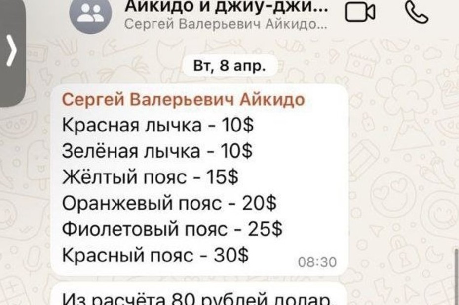 — Обращение по вопросу функционирования Дома культуры в Богородском сельском поселении Пестречинского муниципального района прокуратурой района рассмотрено. Салеев С.В. осуществляет свою деятельность в качестве индивидуального предпринимателя и на основании договора с Исполнительным комитетом Пестречинского района. Экзамены на получение соответствующего степени владения боевым искусством по айкидо проходят в добровольном порядке, а информация направляется родителям через социальные мессенджеры. В настоящее время проверкой установлено, что Салеев С.В. продажей каких-либо спортивных атрибутов и экипировки, как указано в обращении, не занимается. Информация о стоимости экзамена за степень по боевому искусству, которую он выставил в мессенджере, соответствует курсу валюты на момент сдачи экзамена. Кроме этого ограничений по приему экзамена не производится, и все выплаты по курсу валюты проводятся исключительно в качестве пожертвований. Физическими лицами оплата за экзамен в иностранной валюте не производится и не принимается, оплата производится исключительно в рублях. В этой связи нарушений действующего законодательства не установлено.