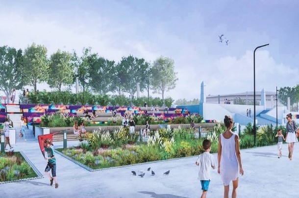 На участке между Нацбиблиотекой и «Миллениумом» появятся амфитеатр, пирс, поля для мини-футбола, «Парк знаний», спуски к воде и кафе — стритфуд, кафе-мороженое, бистро.
